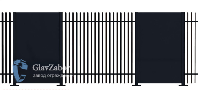 Горизонтальные перекладины панелей выполнены из оцинкованного профиля сечением 30×30×3,0 мм; вертикальное наполнение — лист толщиной 2 мм (шаг 101 мм) с последующим гальваническим оцинкованием.