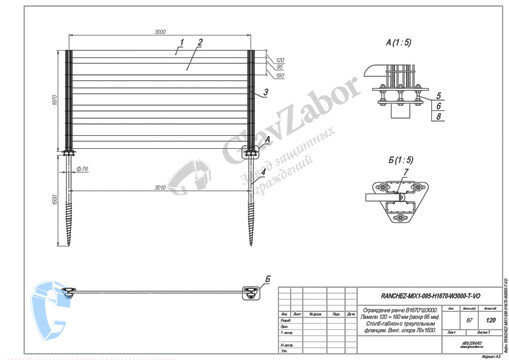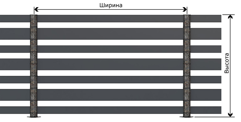 Ширина ограждения (длина ламелей) — 2000 / 2500 / 3000 мм.