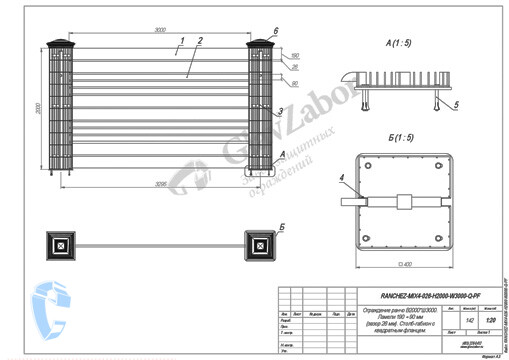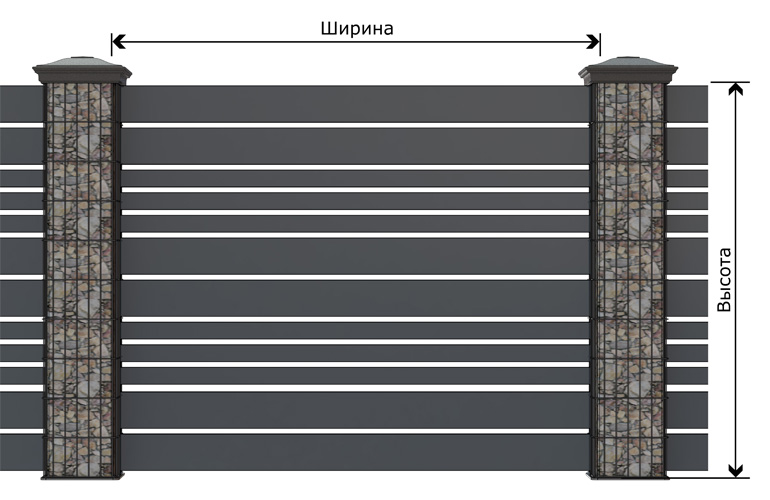 Ширина ограждения (длина ламелей) — 2000 / 2500 / 3000 мм.